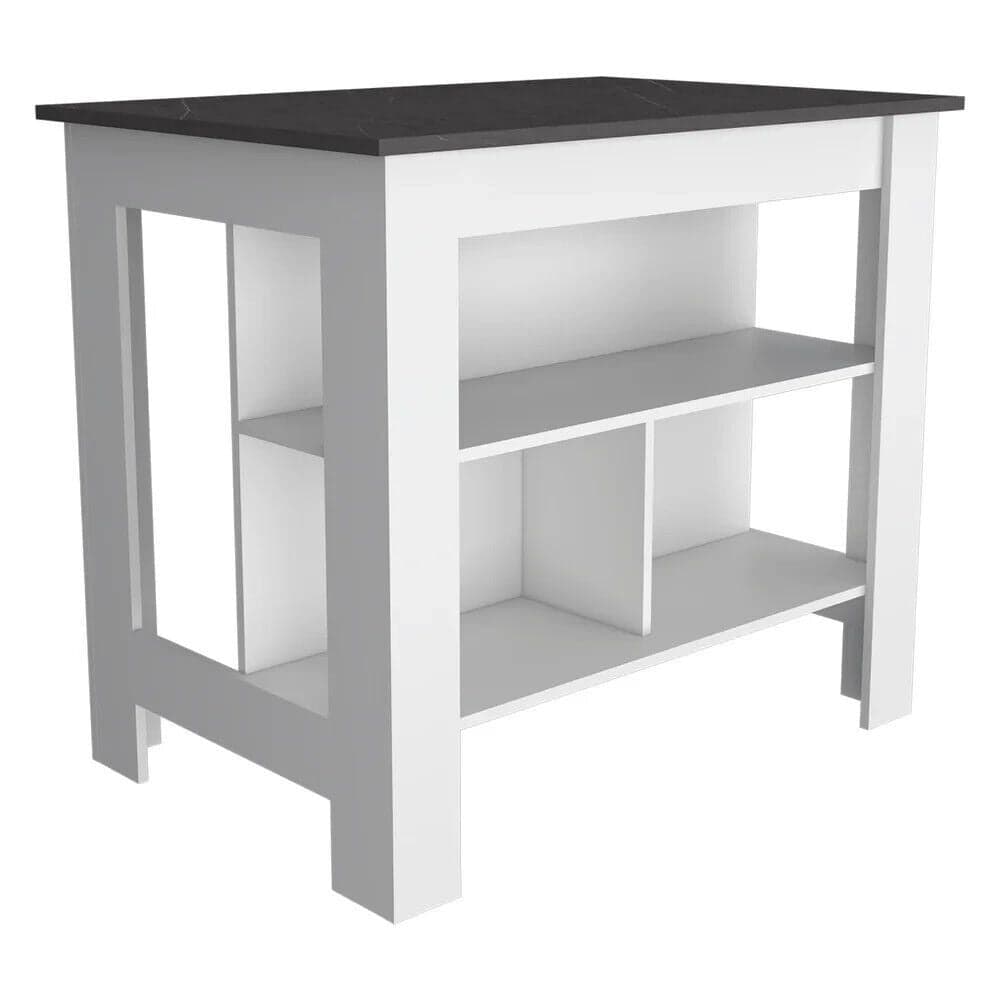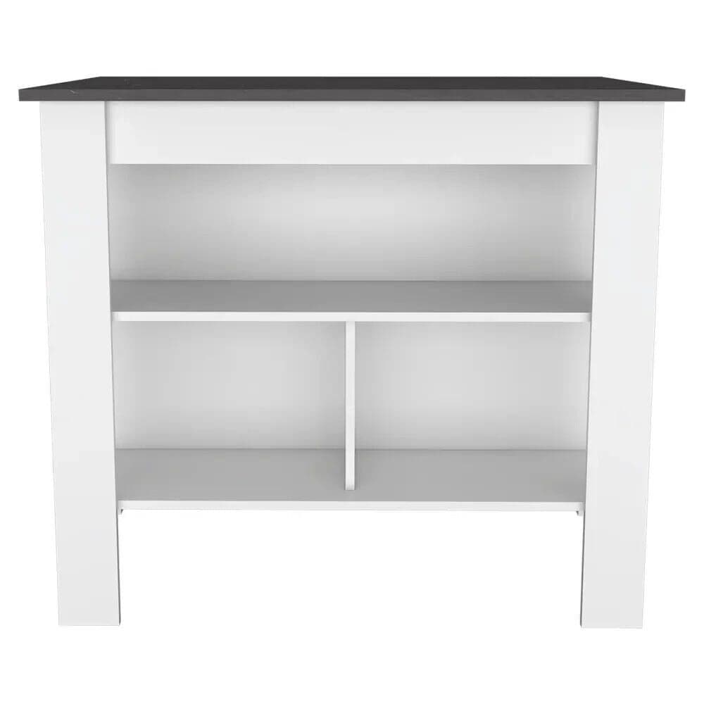 Kitchen Island Table With Open Lower Storage White Finished/Black Onyx