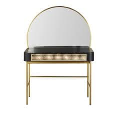 Tocador negro de rejilla de ratán y metal color latón con 1 cajón Loreto | Maisons du Monde
