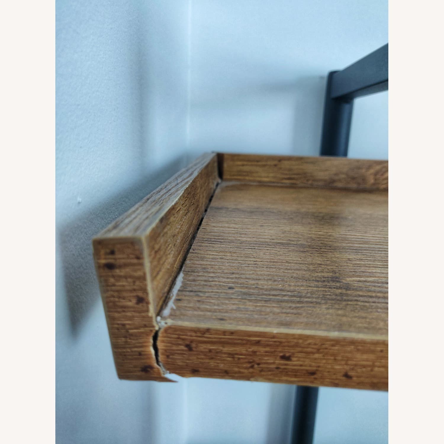 As we are moving out, we sell our Etagere Bookcase. Unfortunately it had a little crack in the upper left corner when it was delivered. Since it's in the upper corner, you don' really see it. Other than that, the shelf is in a very good condition and is very stable. The material is manufactured wood.