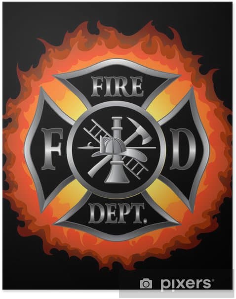 Fire Department Maltese Cross With Flames Poster ✓ Easy Installation ✓ 365 Days to Return ✓ Browse other patterns from this collection!