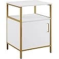 OSP Home Furnishings Alios Modern End Table, White Gloss Finish and Gold Frame