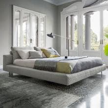 Tonight bed with upholstered headboard. Features built-in storage, drawers or pull-out bed base. Smooth or quilted upholstery in fabric or leather.