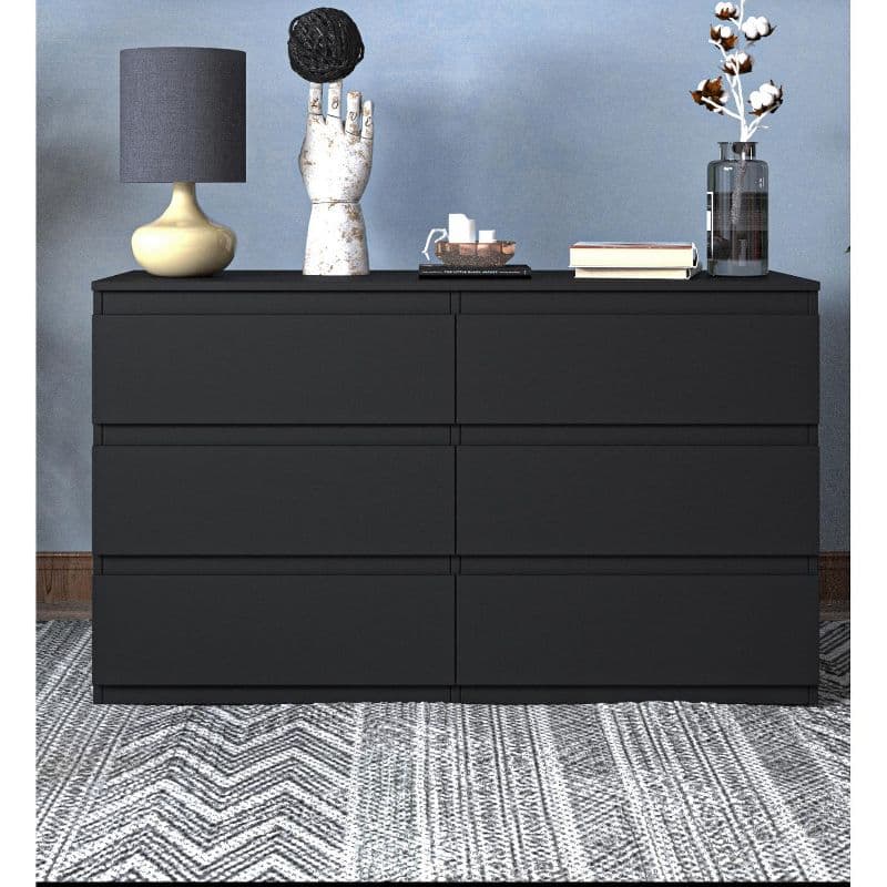 This 6-drawer dresser with plenty of storage is an easy way to keep your things organized. Store a variety of items while offering a modern, sleek look that blends seamlessly with any decor. The finish is easy to clean, waterproof, scratch-resistant, and stain-resistant, making it ideal for home or college life.