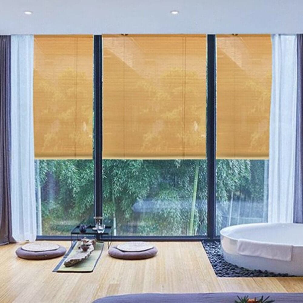 31.5×59 inch Natural Bamboo Roll-Up Roman Shades Light Filtering Window Treatment Indoor/Outdoor