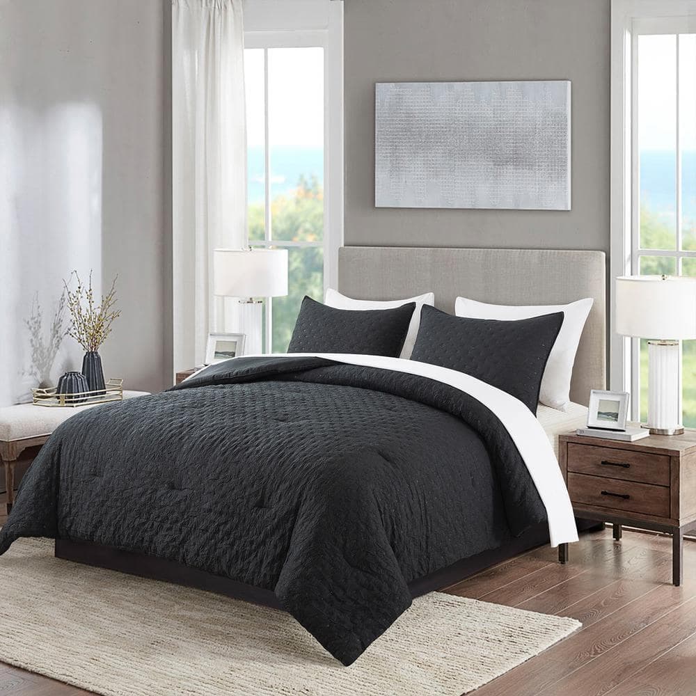JML 3-Piece Black Quilted Creased Mincofiber Queen Size Comforter Set WCS03-BLK-Q - The Home Depot