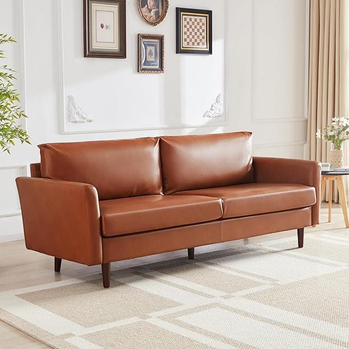 Buy WILLOVE 80'' Faux Leather Sofa, 3 Seater Leather Couch with Cozy Wide Seats and Padded Cushions, Mid-Century Modern Loveseat Couches for Living Room Furniture, Brown: Sofas & Couches - Amazon.com ✓ FREE DELIVERY possible on eligible purchases