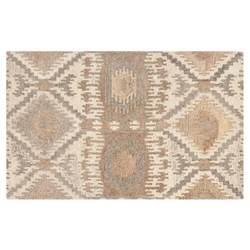 Wool rug brings global style to your space with an ikat-inspired pattern in neutral tones. Use a rug pad for enhanced durability and to keep it in place.