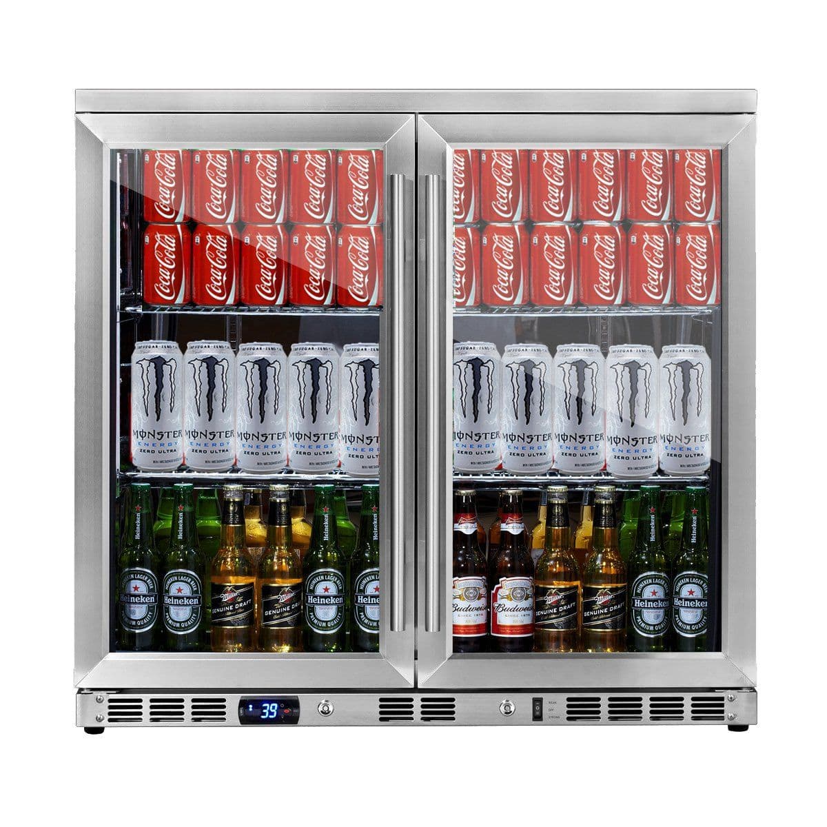 Designed to hold up to 169 cans, this cooler is perfect for home and commercial bars everywhere. The advanced front-venting system means don't have to worry about leaving additional space around the unit for built-in installation, while the type 304 commercial grade full stainless steel fits seamlessly into any bar decor.