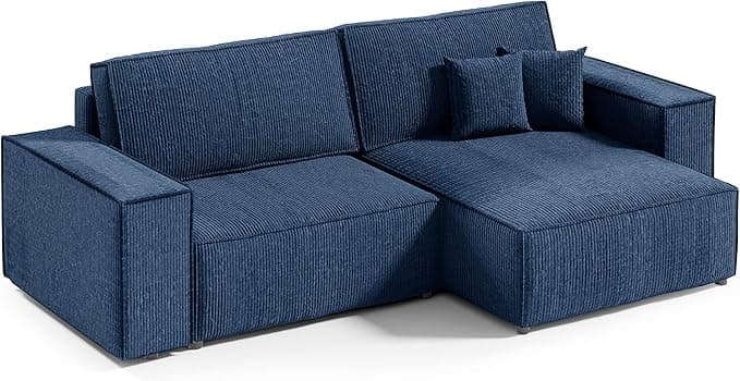 Tendencio Canapé d'angle Convertible Vella Mini en Velours côtelé. Coffre de Rangement - 260 cm de Longueur (Bleu)