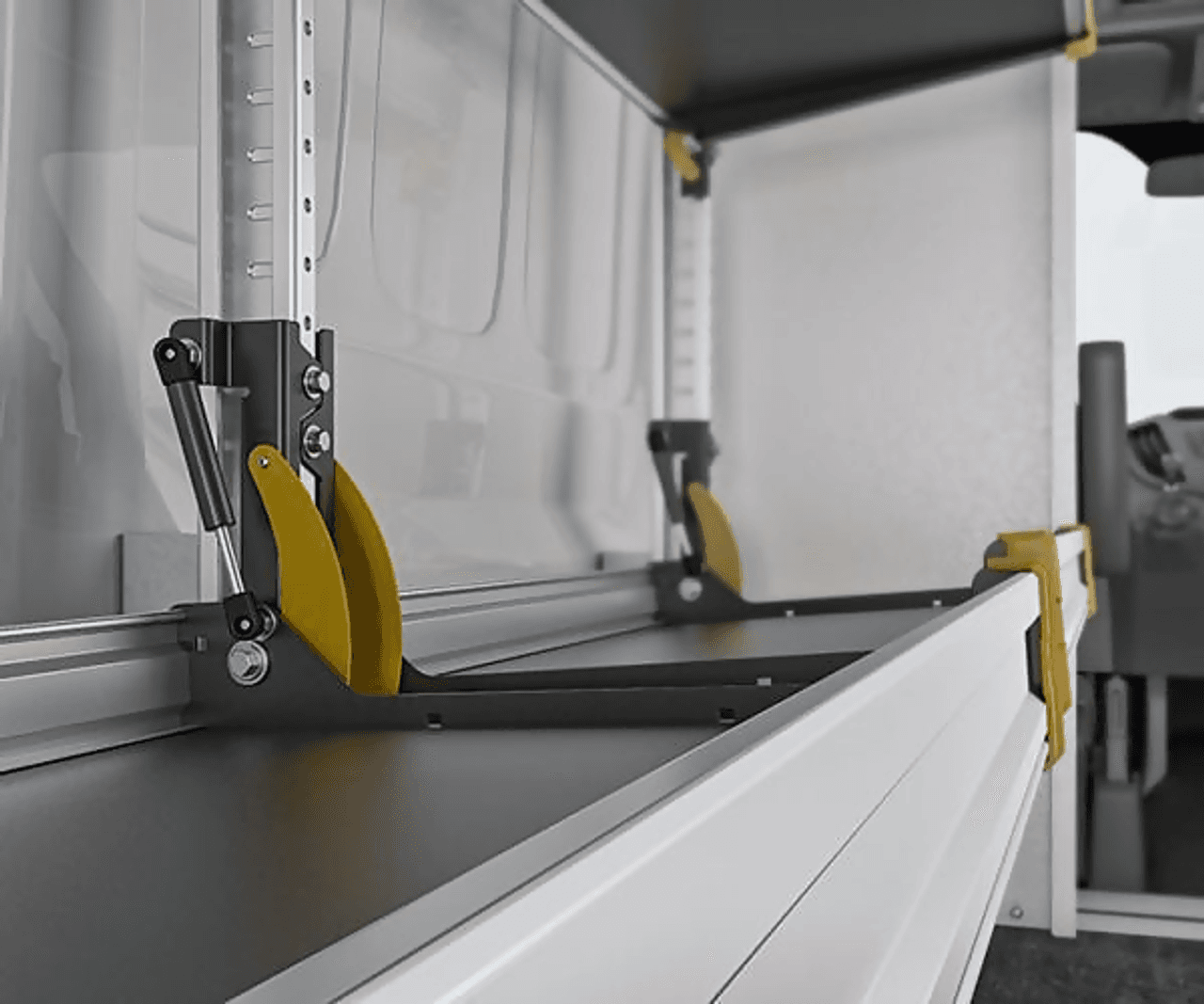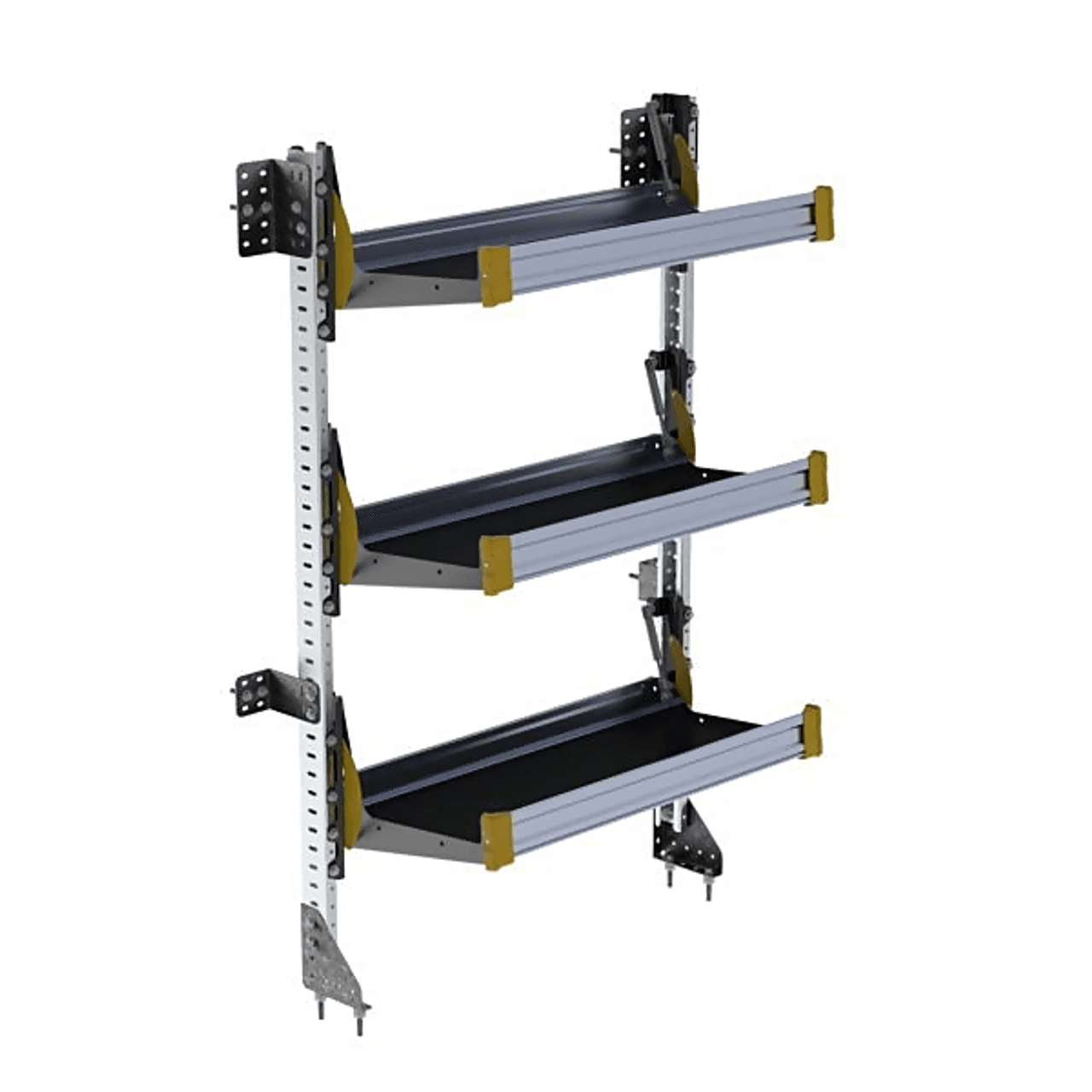 Get the Ranger Design 36" fold-away shelving unit at Advantage. The 3-level shelving system is ideal for Sprinter, ProMaster, and Transit vans. Shop now.