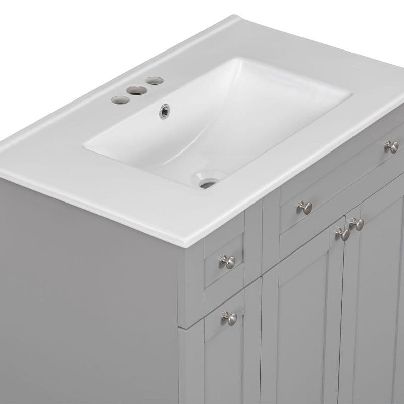 Nicbex 30" Bathroom Vanity With Sink, Bathroom Cabinet Storage With 1 Double-tier Deep Drawers And 2 Cabinet Doors With Shelf For Bathroom, Gray