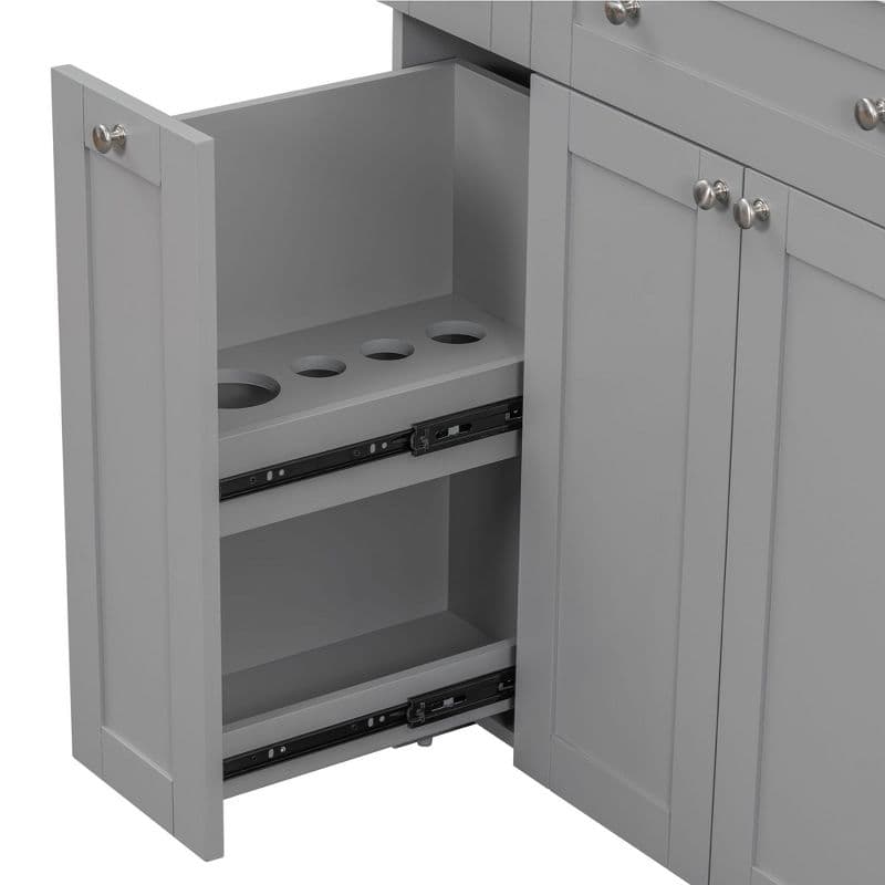 This stylish vanity cabinet is designed to elevate your bathroom's aesthetics while providing practical storage solutions. Featuring a sleek finish, it seamlessly blends with a variety of decor styles, from modern to traditional. The two soft-close doors not only enhance the cabinet's elegance but also ensure a quiet, gentle closure, protecting the cabinet's integrity over time. The double-tier deep drawer is perfect for organizing a wide array of bathroom essentials, from skincare products to towels, keeping everything easily accessible yet neatly tucked away. Crafted from high-quality materials, this vanity is both durable and easy to maintain, ensuring that it withstands daily wear and tear. This vanity cabinet combines functionality with a chic design, making it a perfect choice for any bathroom makeover.