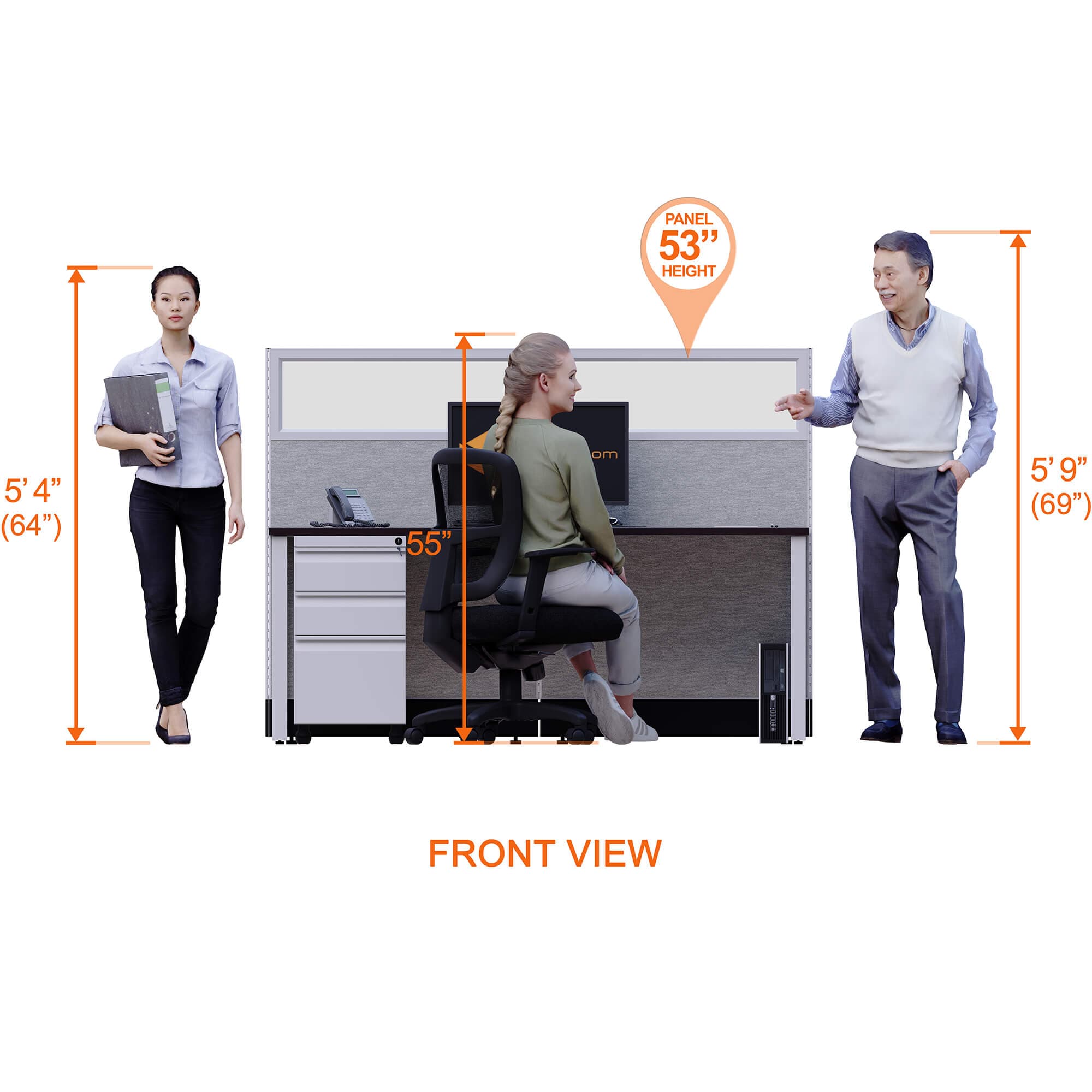 O2 NOW™ collaborative workspace furniture (140) can increase opportunities for valuable engagement and teamwork by bringing everyone together at coworking desks. The intelligent design is aesthetically appealing and responsive to evolving needs in a business environment. This configuration includes 6 stations in a mirrored arrangement (facing each other), defined by 53”H cubicle walls with windows that provide moderate boundaries, structural support, and channels for network/data cables.