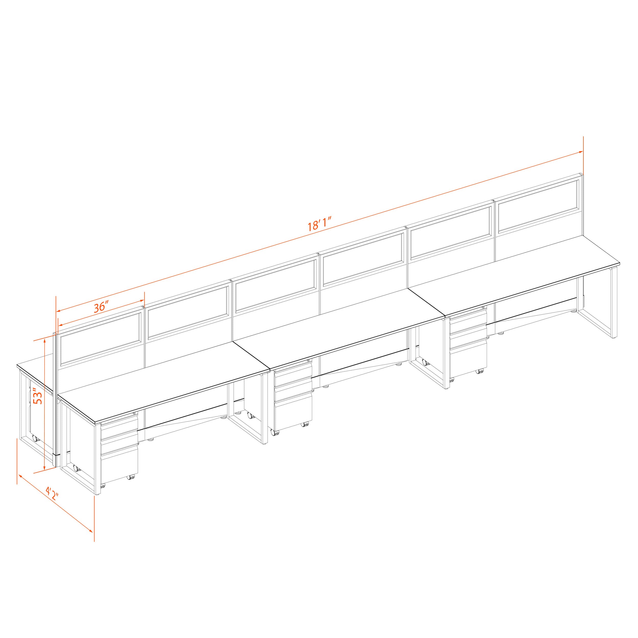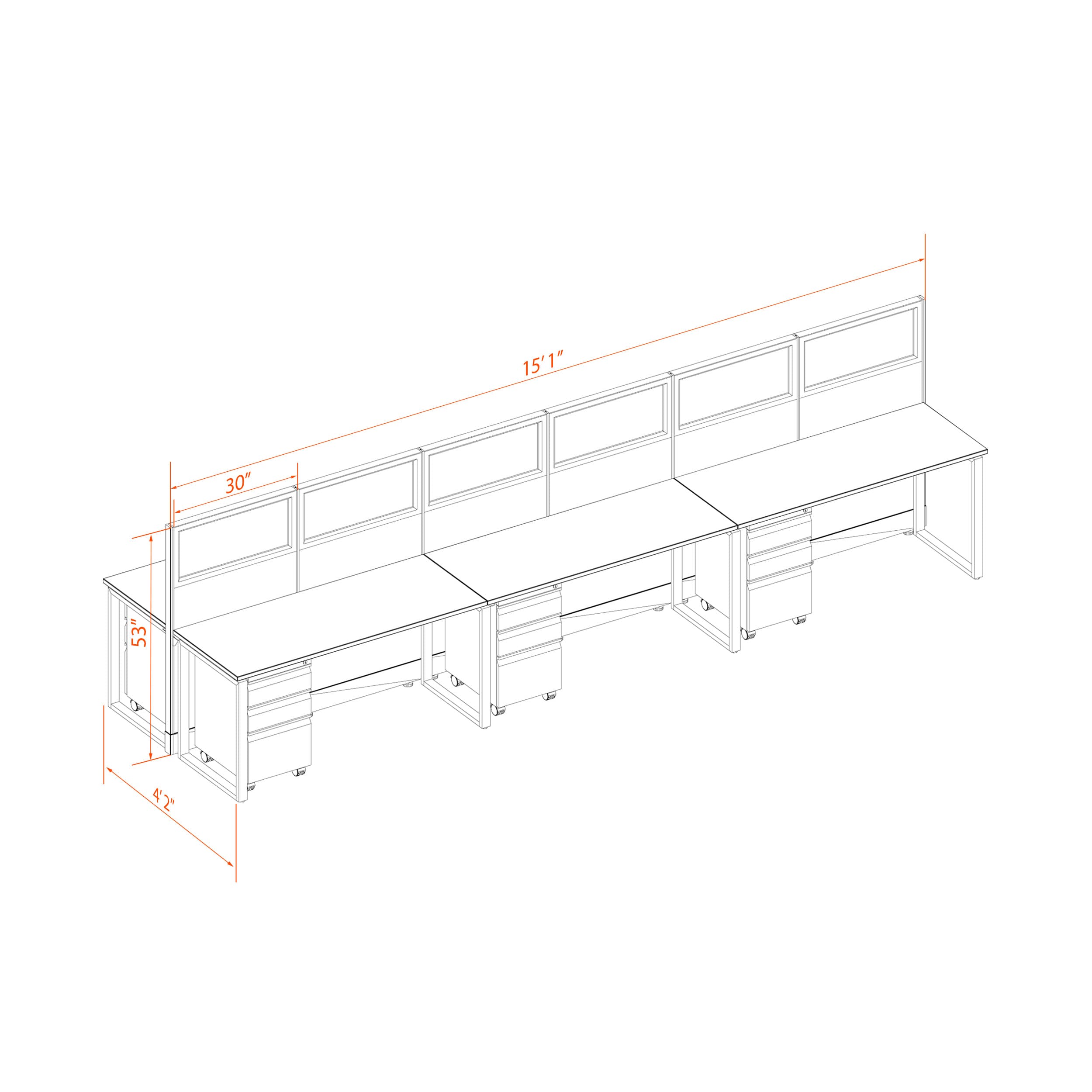 Open Office Desk 53H 6pack Glass Cluster Unpowered
