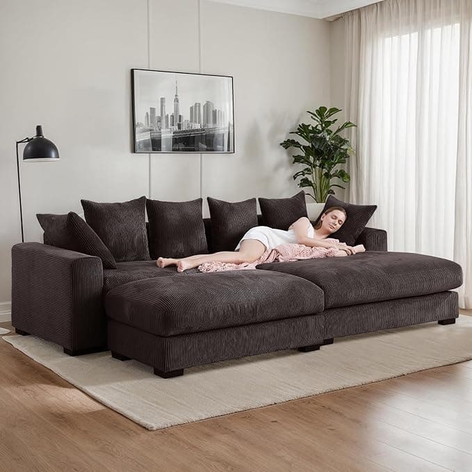 Oversized Modular Cloud Cushion Sofa W/Ottoman, Right Facing Sectional Couch with Extra Wide Chasie Daybed and Footstool, Modern Living Room Corduroy Upholstered Convertible Sofa&Couch W/6 Pillows