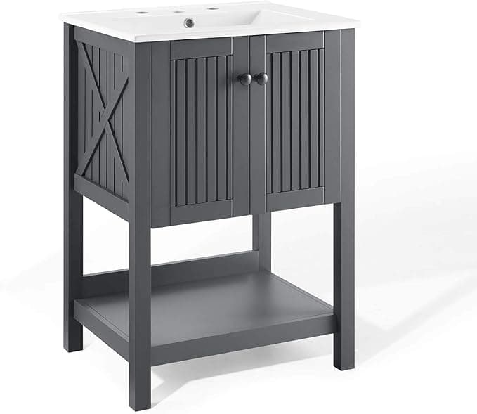 Modway Steam Bathroom Vanity Cabinet, 24" with White Sink, Grey
