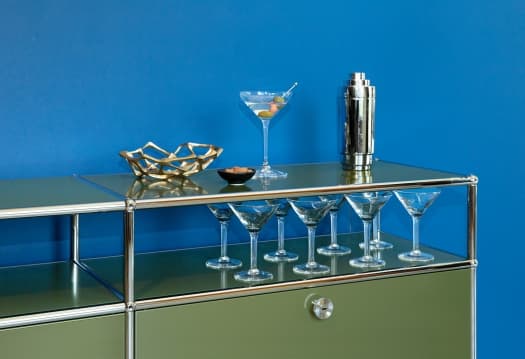 USM Haller Lowboard avec deux portes rabattables Vert olive NOUVEAU TEINTE STANDARD | USM DE QS MS02 N99