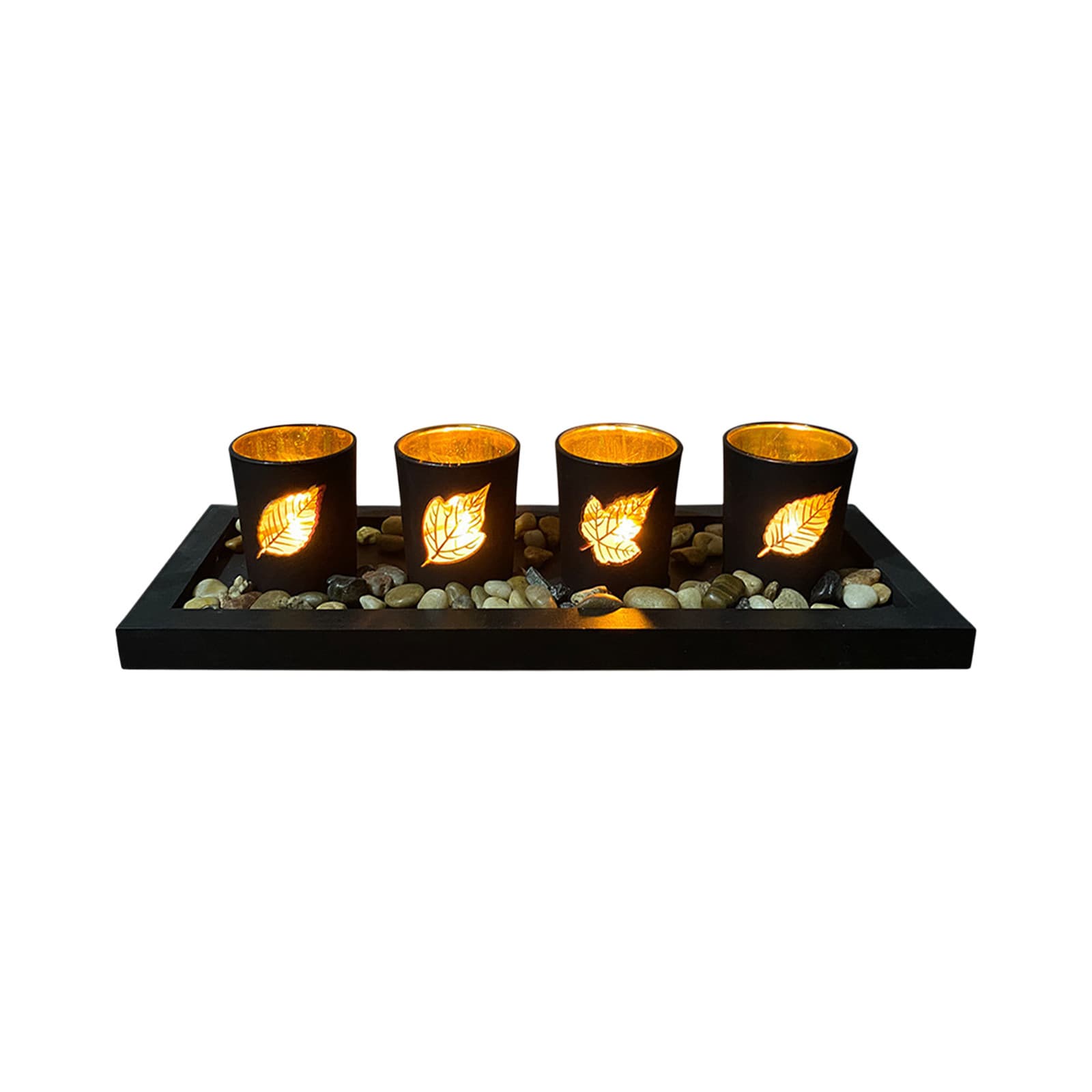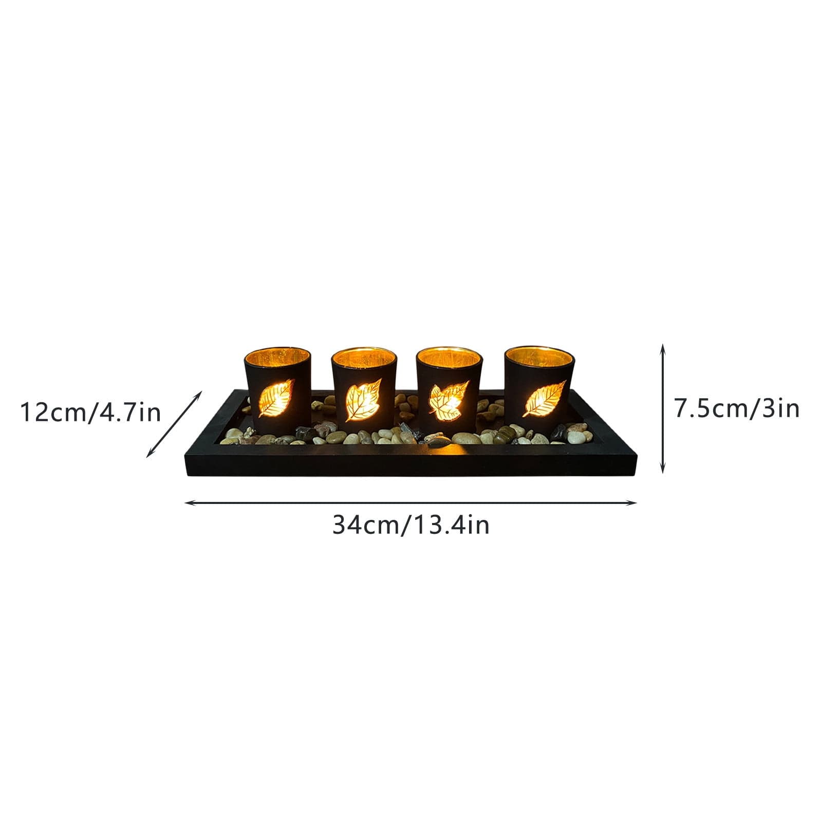 Candle holder made of natural wood, glass and pebbles, the unique appearance creates a romantic and elegant atmosphere. To be used as a decorative alone or with candles. Suitable for cup candles as well as votive candles. Great for decoration of pub, bar, home, hotel, cafe. Perfect decorative ornament for wedding, party and other special occasions.