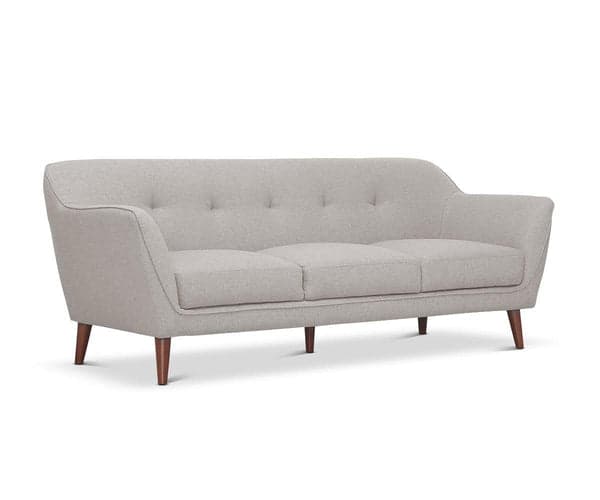 Create the living room of your dreams with the shapely Dakota Sofa. The high backrest seamlessly flows into the slanted armrests for an elegant look. Five tufted buttons adorn the frame, giving this piece a minimal, clean profile. Plus, angled, tapered legs add a subtle mid-century feel.
