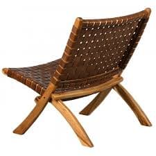 Folding armchair in teak wood and brown leather - Boisnature'l