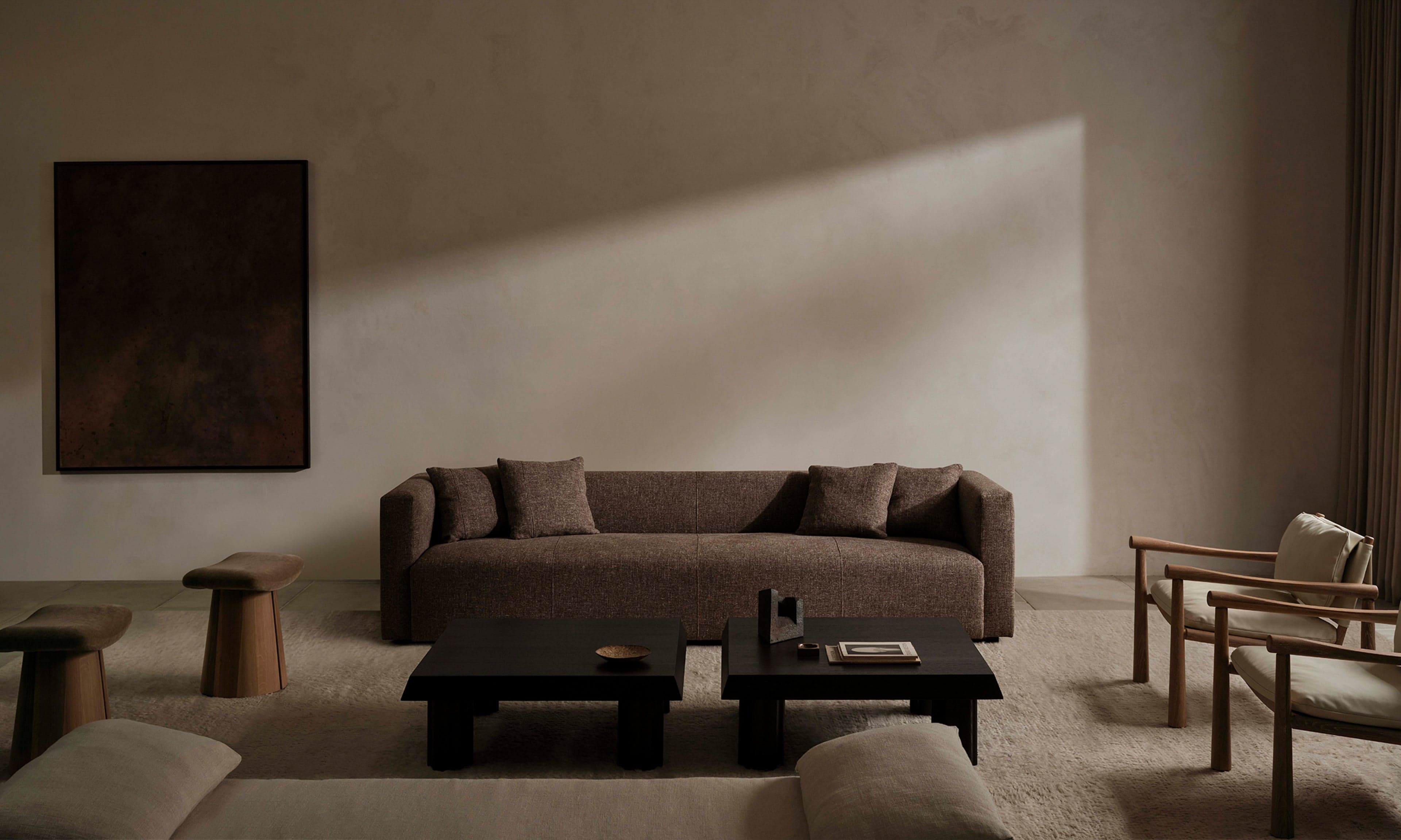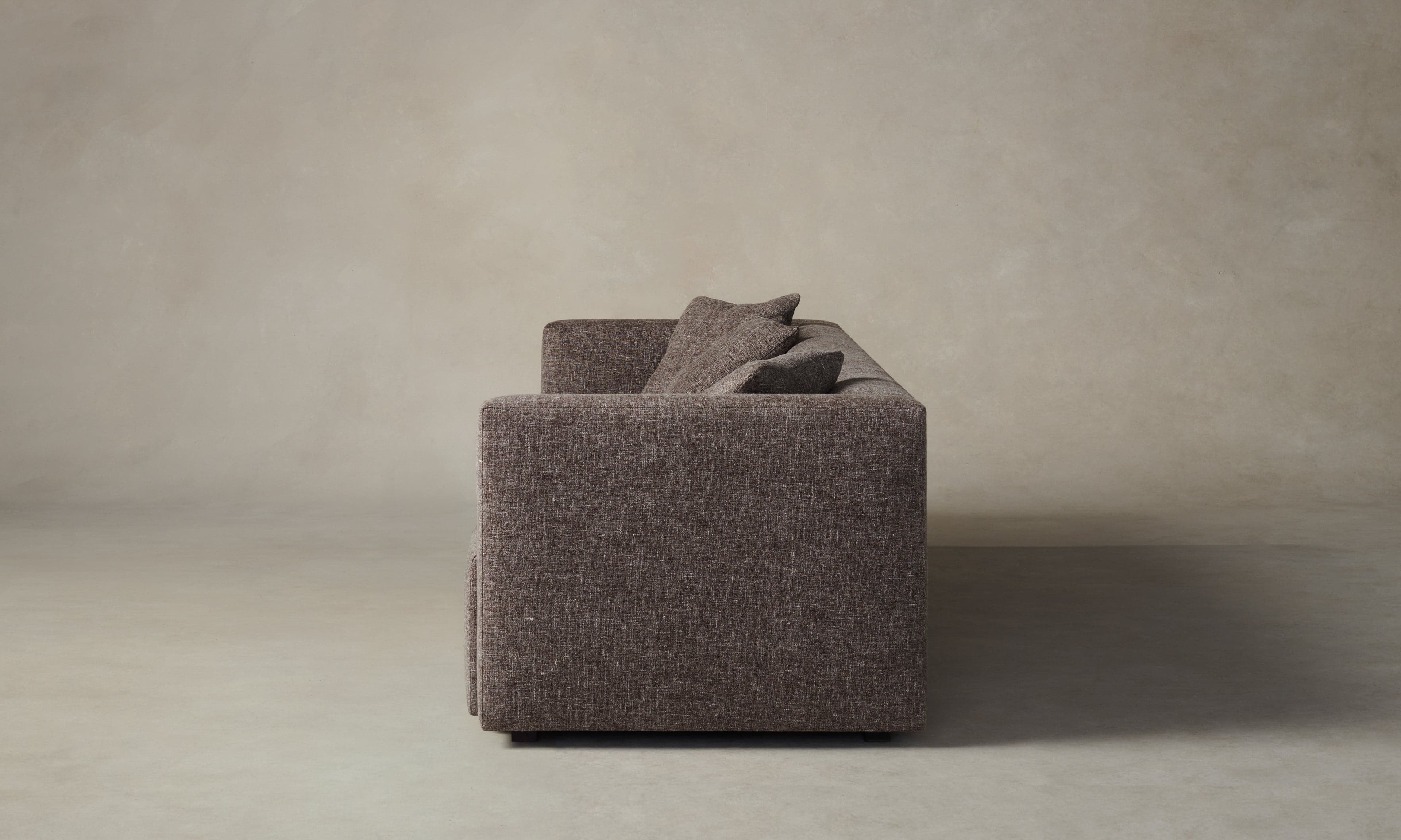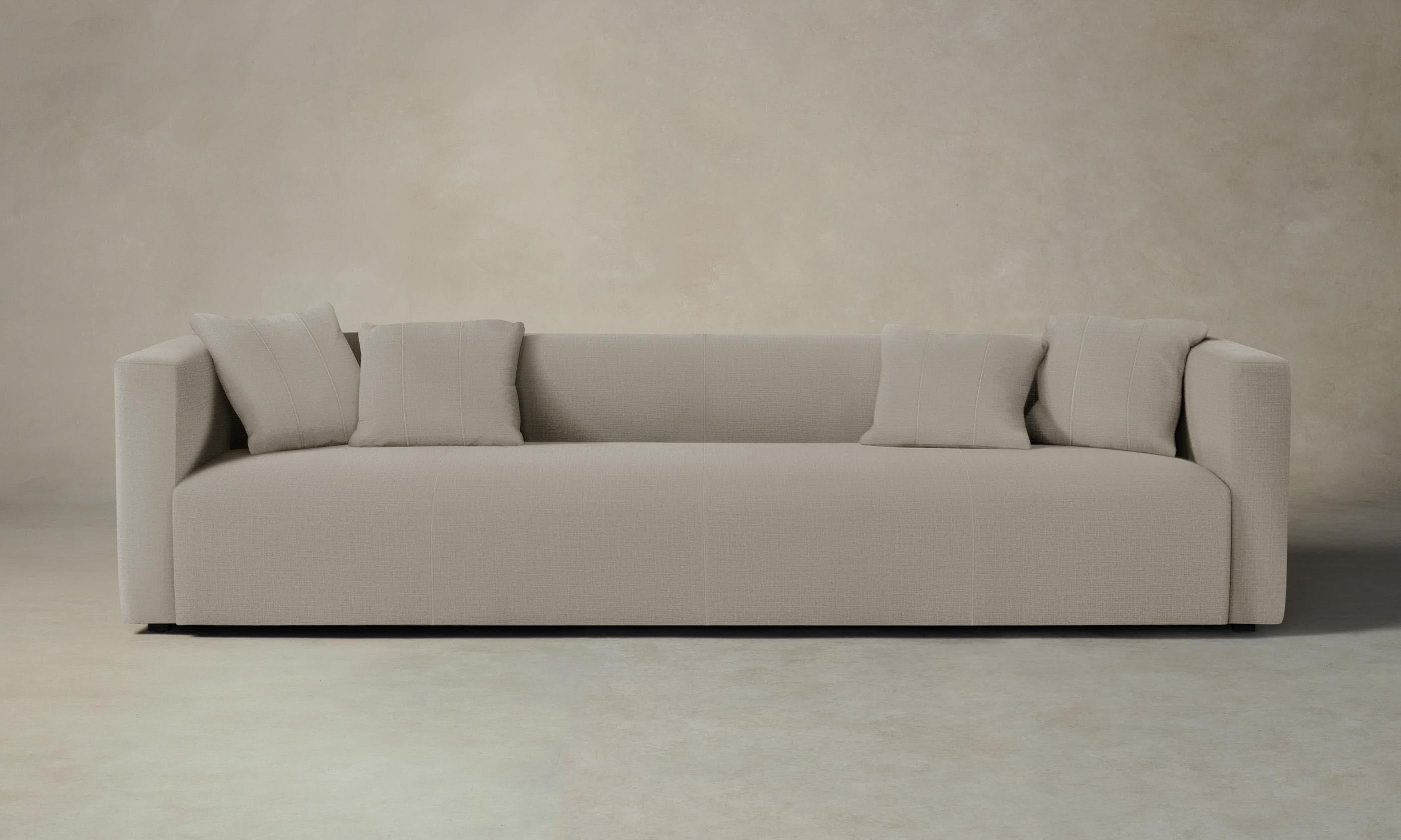 The Breuer sofa draws inspiration from the bold and graphic shapes of Italian modernist design. Tightly upholstered for a sleek look, it has a low-lying seat accompanied by plush throw pillows.