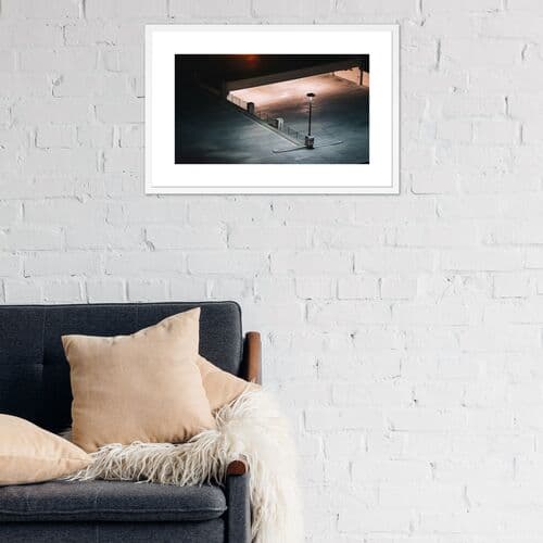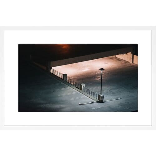 Exclusive to One Kings Lane: An empty parking lot in Los Angeles transforms into a canvas of light and shadow in Jeff Seltzer's striking photograph. Printed on premium paper, it comes framed and ready for display. Jeff Seltzer's photography captures static views of our common urban settings, illustrating the human impact on modern environments. His works encourage viewers to appreciate the beauty in everyday scenes and find balance in the familiar.