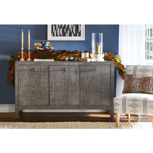 Kos Raffia 3-Door Sideboard - Gray | Console, Cupboard, Buffet - Ideal Storage, Decor