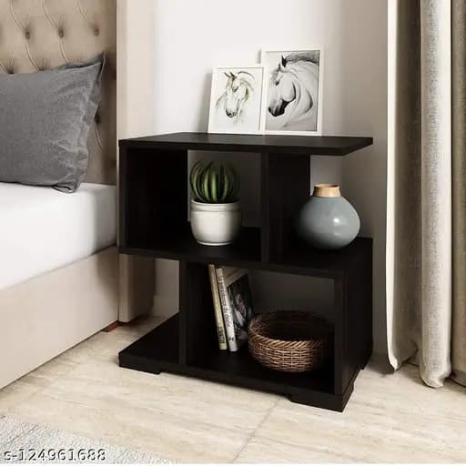 Z.S PRESENT BY Nightstand is beautifully designed to enhance the look of your room. Buying furniture without being planned affects your decoration and overwhelms the space. Choosing the right one for your home or office not only improves overall beauty but keeps your stress away as well. This sofa table is S-shaped and comes flatpacked which is built up of engineered wood with modern contemporary design and pre-laminated matte finish that is durable and long-lasting. This side table features two open squares asymmetrical stacked on top of one another to create four shelves to store books or display plants. It can be used as a night table in the bedroom or an end table in the living room, office, etc. This side table will meet your storage needs and is perfect for the bedroom, living room, hall or anywhere you need a storage solution. Bedside lamps can be placed on this DIY stand to create a complete look. This wooden side table can be used as a router stand, bookshelf, decor stand, and bedside table for easy access to things. Country of Origin: India