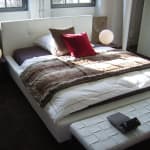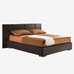 Das Bett WALL von IBFOR ist ein Einrichtungsaccessoire im Bauhaus-Stil mit modernem Design. Die Struktur des WALL-Bettes von IBFOR besteht aus Massivholz, die Füße sind aus Metall mit Chromoberfläche und das Untergestell aus Stahl mit Buchenlatten. Der Bettrahmen und das Kopfteil sind mit Schaumstoff unterschiedlicher Dichte gepolstert, der Bezug besteht aus Leder, kann aber auf Wunsch auch aus Samt oder Stoff gefertigt werden. Das Hauptmerkmal des WALL-Bettes von IBFOR ist das Kopfteil mit rechteckiger Steppung, das den Ziegeln einer Wand nachempfunden ist.