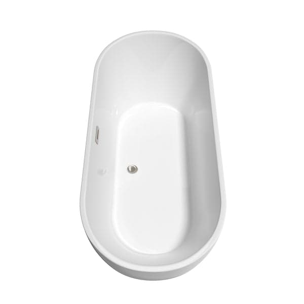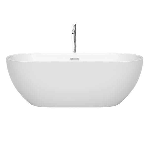 Wyndham Collection Brooklyn 67 Inch Freestanding Bathtub in White with Floor Mounted Faucet, Drain and Overflow Trim