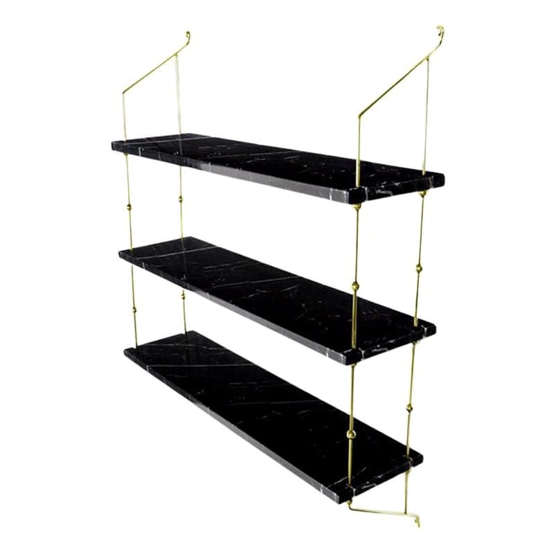 Green Indio Marble and Brass Morse Shelf by OxDenmarq