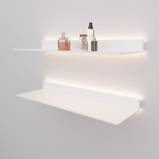 Double Recessed LED Aluminum Floating Shelf for Wall, Large Wall Shelves for Bedroom, Mounted Bookshelf for Wall Decor, Home Bars, Dining Room, Living Room, Hotel (7.87'' x 23.62'', White)
