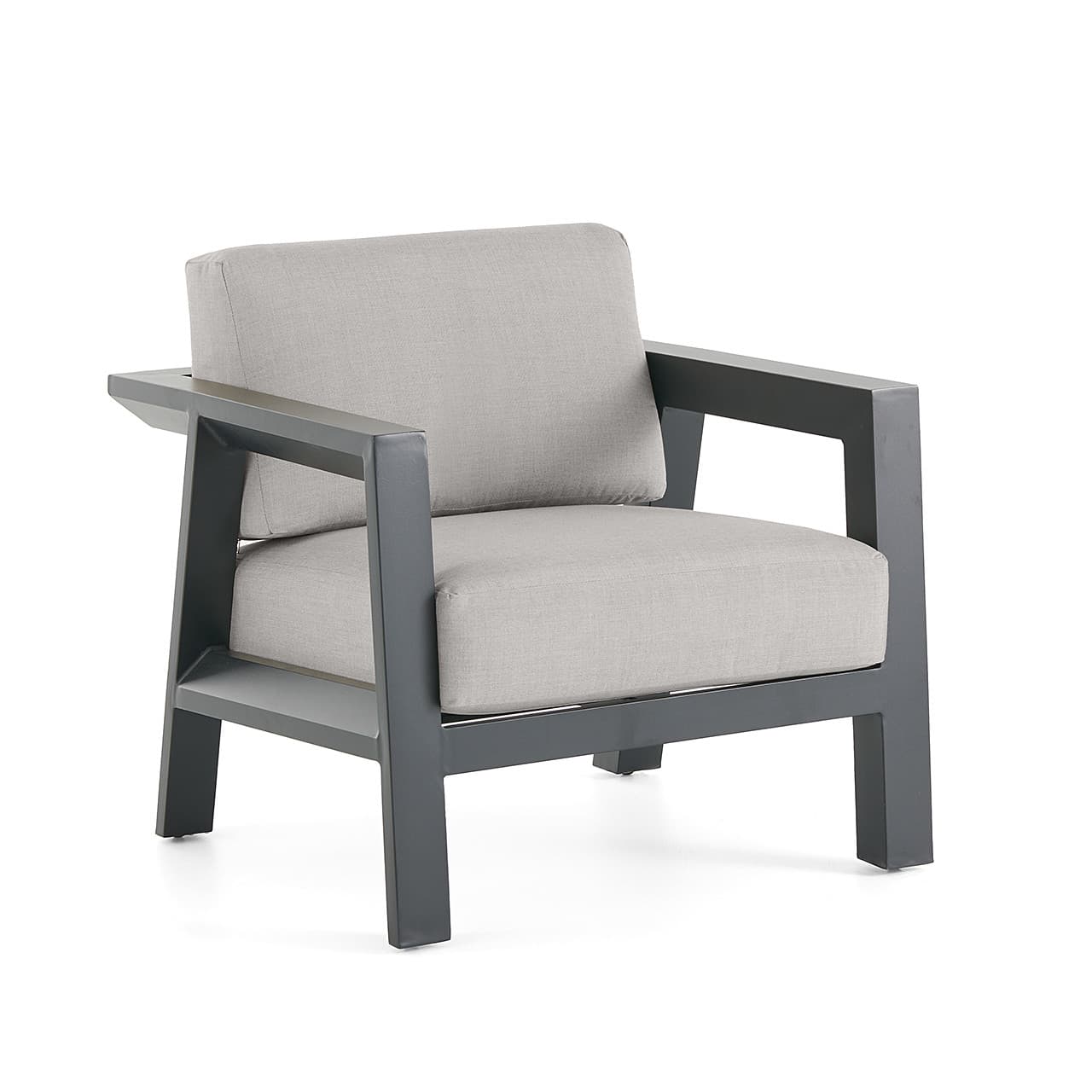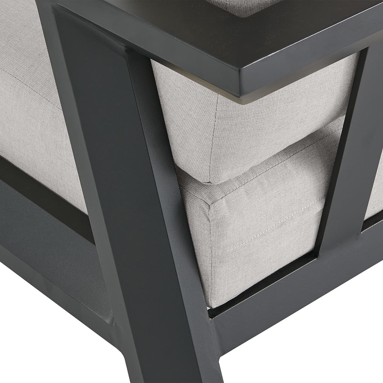 The St. Lucia Collection is a bold and contemporary outdoor seating set that will provide you with the perfect backyard patio experience. The club chair has a handmade aluminum frame with a durable multi-step powder-coated and oven-baked clear coat finish. It is built by laser welding to create fully welded and braced frames with zero weld marks. The seat cushions feature a firm yet plush foam core wrapped in polyester for extra comfort, while the back cushions are layered with polyester to retain their shape while still providing comfort. Add extra seating to your sofa group and create a configuration suited for your style.Features: