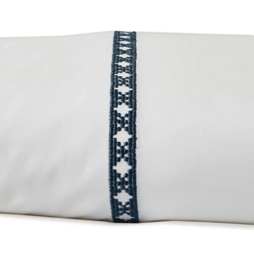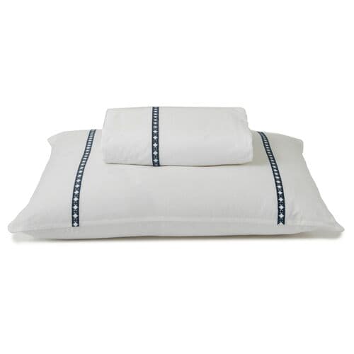 Showcasing an intricate diamond pattern, this duvet set brings a touch of timeless elegance. Made in the USA from snow-white cotton sourced from Portugal, renowned for its quality textiles.