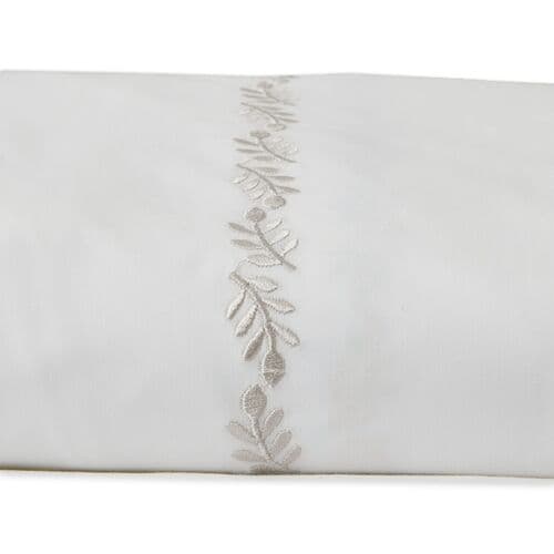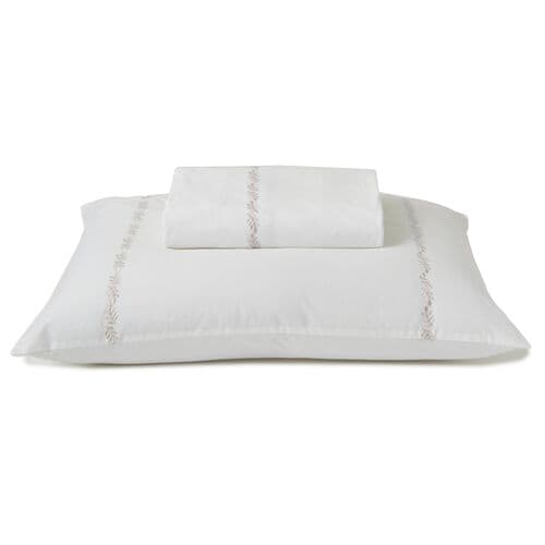 Exclusively at One Kings Lane, the duvet set features an elegant laurel motif embroidered on cotton. Designed in a striking snow-white color, it invites you to enjoy its comfort.