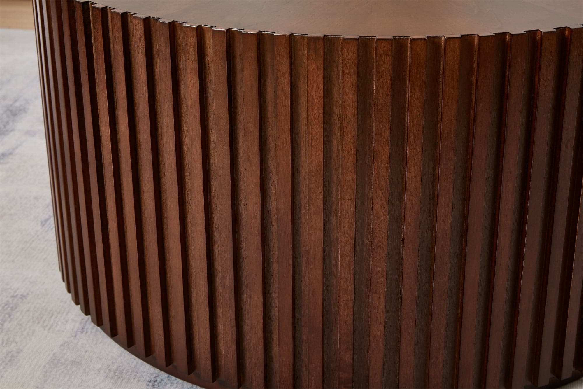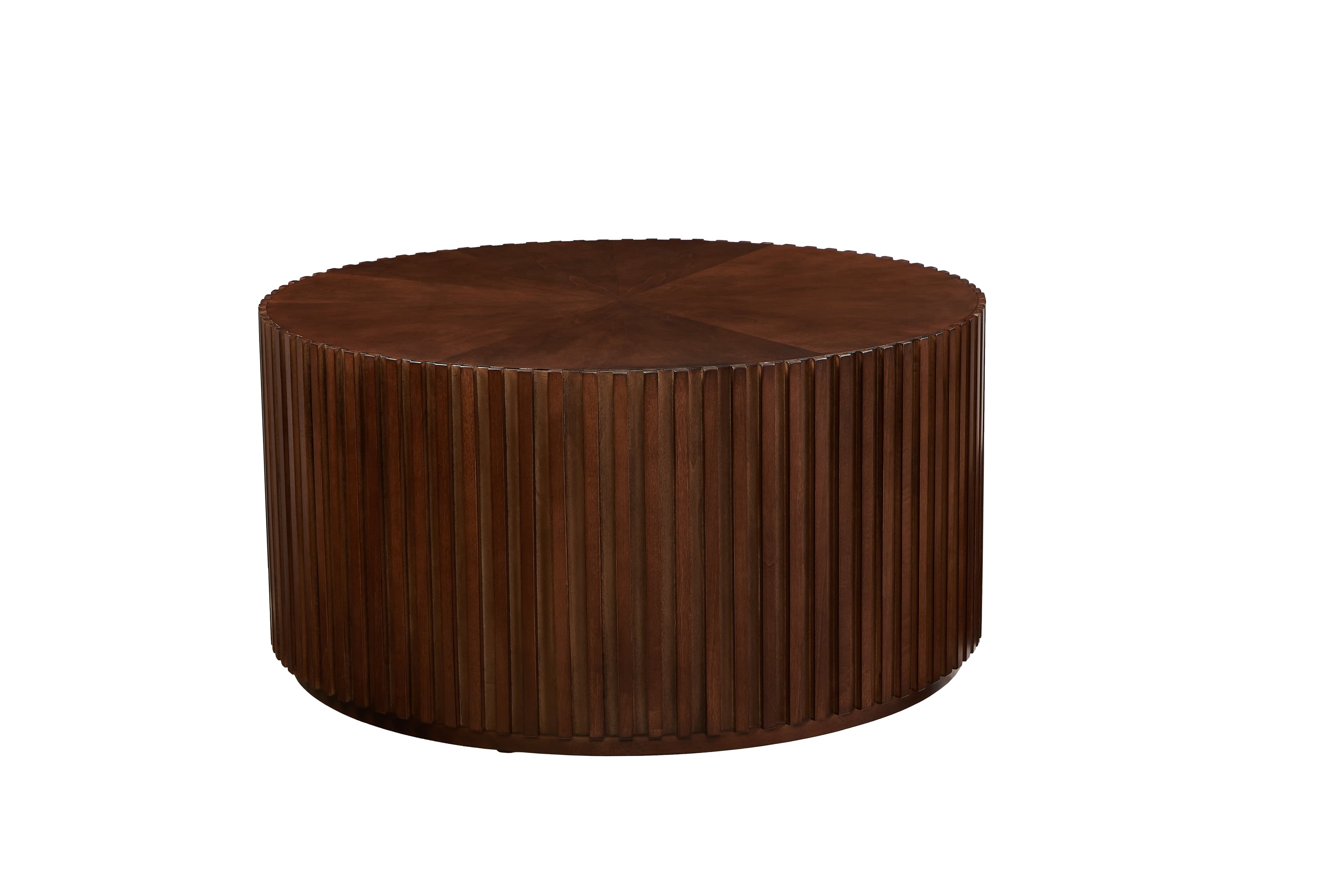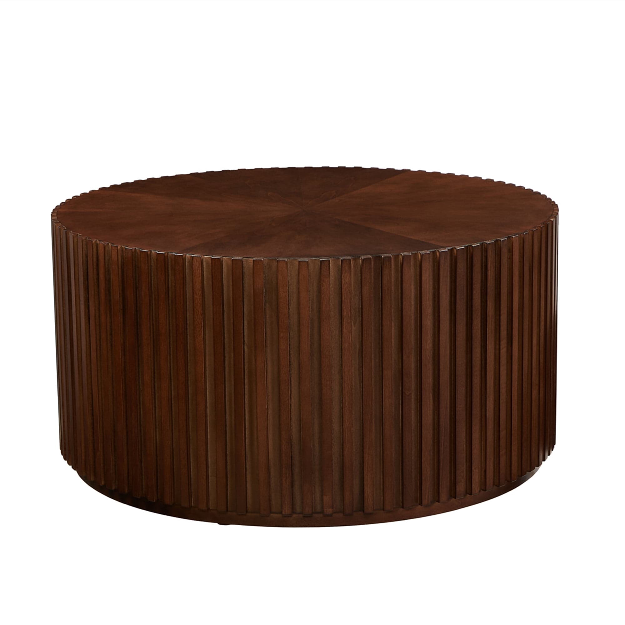 Buy MCPRST Round Coffee Table, Solid Wood Center Table for Living Room, Circle Drum Coffee Table with Handcrafted Relief, Walnut at Walmart.com