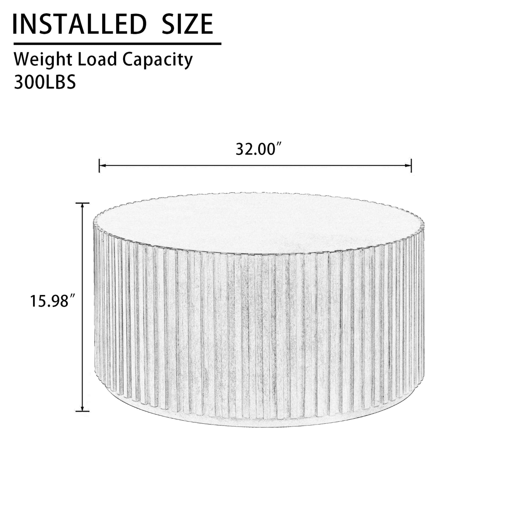 MCPRST Round Coffee Table, Solid Wood Center Table for Living Room, Circle Drum Coffee Table with Handcrafted Relief, Walnut