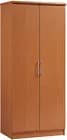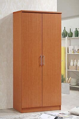 Features a laminated finish in a variety of colors. It has 2-doors that easily open to a spacious wardrobe. Cabinet has 1-fixed shelf and 3-adjustable shelves. Finish: Cherry. 3 of the 4 shelves are adjustable.