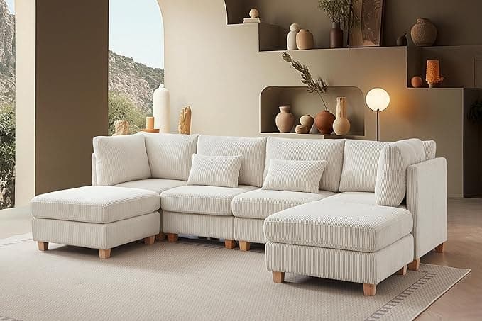 Buy MYINDA U Shaped Sectional Couches for Living Room, 110 Inch Modular Sectional Sofa with Movable Ottoman, Corduroy Oversized Living Room Furniture Sets (Beige): Sofas & Couches - Amazon.com ✓ FREE DELIVERY possible on eligible purchases