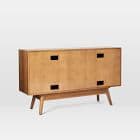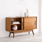Our Mid-Century Narrow Media Console is a versatile storage piece that's built to last. Made in a Fair Trade Certified facility, its sturdy frame is made from kiln-dried, sustainably sourced wood and covered in water-based finishes.