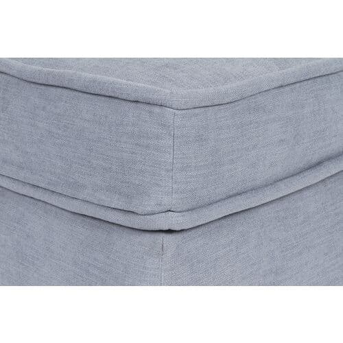 Crafted exclusively for One Kings Lane, this ottoman showcases a sleek silhouette with a frame made from reclaimed alder wood and rests on sturdy block feet. Whether used alone or as part of a sectional, its fully upholstered and tufted design, enhanced by a linen-like woven fabric, offers a stylish appearance. With foam wrapped in Dacron and Trillium fill, it guarantees prolonged comfort.