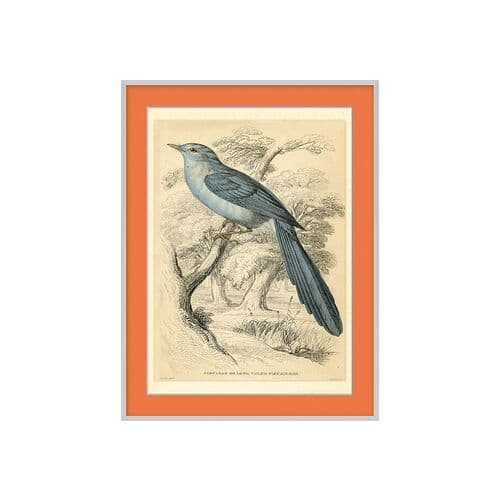Exclusively designed for One Kings Lane, this piece replicates an antique bird study. Printed on matte paper and framed under glass, it features a bright orange mat, ready for display.