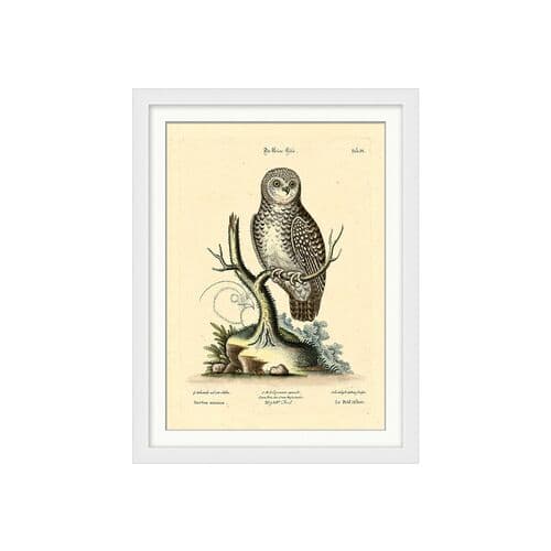 Exclusively designed by us, this piece is a faithful reproduction of an antique bird study. It is printed on matte paper and presented with a white mat, enclosed under glass in a simple frame. The artwork is ready to hang, making it a perfect addition to any space.