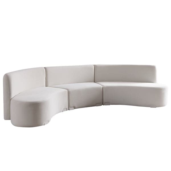 Ghita is the epitome of modern elegance. Adorned in luxurious velvet upholstery, the curved sectional sofa provides a sophisticated and inviting ambiance in any living space. With a sculptural silhouette designed to embrace comfort, a curved couch in white is the perfect addition to any modern living room.