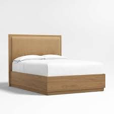 Meraux 56" Velvet Camel Brown Upholstered King Headboard with Batten Brown Oak Storage Bed Base + Reviews | Crate & Barrel