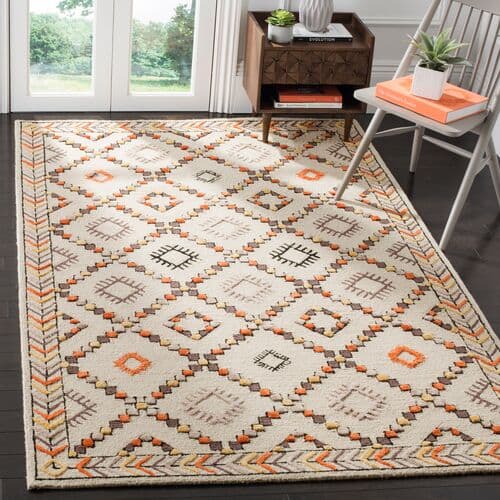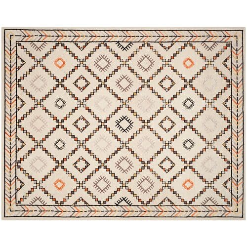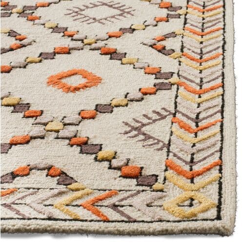 Made from wool, this rug adds vibrancy and texture to any area. It is recommended to use a rug pad to prolong its lifespan and maintain stability.