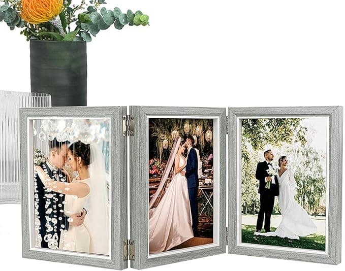 Cadre Photo Pliable Triple/Quadruple, Cadres Photo Collage - Cadre Photo Vertical en Verre pressé en Bois Antique 6 7 8 en métal Charnière Flottante pour Table