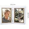 HAES DECO - Cadre Photo Double en Bois 15x20 Fevik en Blanc avec Marron - 2 Cadres Photo Bois - 2 Cadres Photo Debout & Support Mural - pour 2 Photos 15x20 - DP11220
