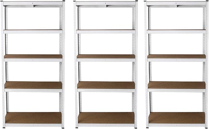 3 Estanterías Metálicas Blancas E-Rax sin Tornillos 90x40x180cm de 5 Estantes Baldas Repisas Capacidad Peso 200kg por Estante Almacenamiento Almacenaje Herramientas Taller Garaje Cobertizo Almacén