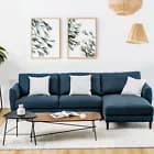 3-Seat L-Shaped Fabric Sectional Sofa with Chaise Lounge & Soft Cushion Navy
